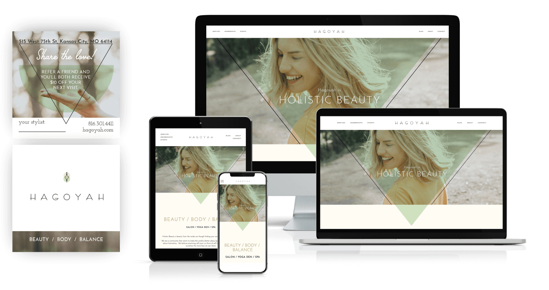 Hagoyah was a local KC holistic beauty and wellness studio that combines salon services, yoga, and community to help clients feel beautiful, strong, and fulfilled from the inside out. They wanted a visual identity that captured “comfortable beauty” and self-love, with a nostalgic nod to mid-century salons and a modern, natural twist.