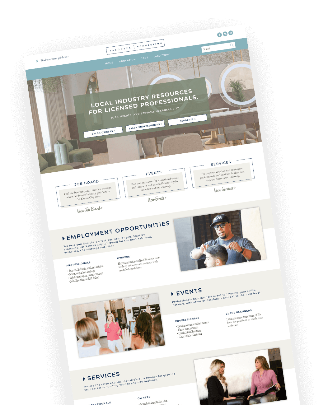 Enlightened HIRE, the sub brand, focuses on premium, curated employment matchmaking so the best stylists and salons can find each other with more clarity and less guesswork. This brand is a little more punchy and fun, focusing on younger stylists looking for work.